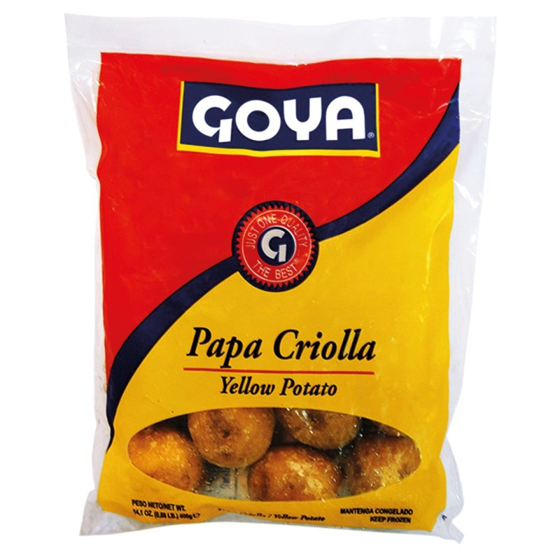 Papa Criolla GOYA 907 g, auténticas papas amarillas colombianas precocidas y congeladas. Doran en 8 min: crujientes por fuera, cremosas por dentro. 100 % natural, sin gluten ni conservantes. Perfectas para desayuno, aperitivo o guarnición. ¡Compra online y disfruta del sabor de Colombia en casa!
