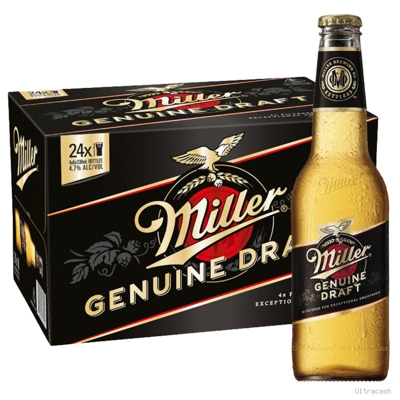 Miller Genuine Draft 6 botellines 355ml, la auténtica cerveza americana elaborada con método cold-filtered sin pasteurizar. Sabor suave y refrescante con amargor equilibrado. 4.7% ABV, caja de 6 botellines vintage. Ideal para reuniones, partidos y momentos de relax. ¡Compra online y disfruta del sabor genuino Miller!