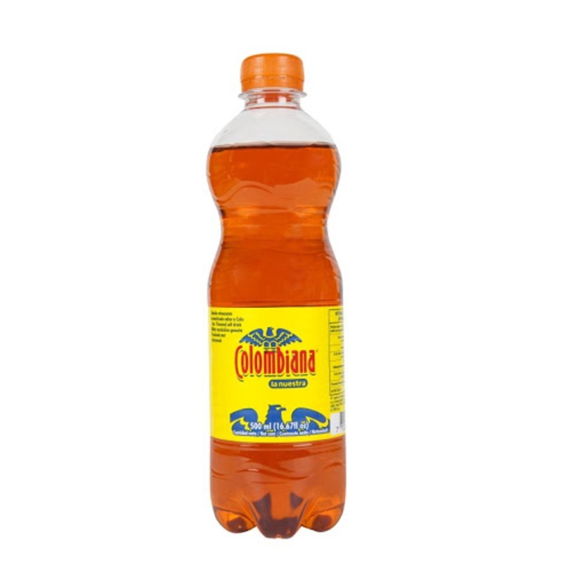 Colombiana 500 ml: la gaseosa insignia de Postobón con sabor cola-champagne, color ámbar intenso y burbuja fina. Sin cafeína añadida, sin grasa, lista para refrescar tu día servida bien fría.