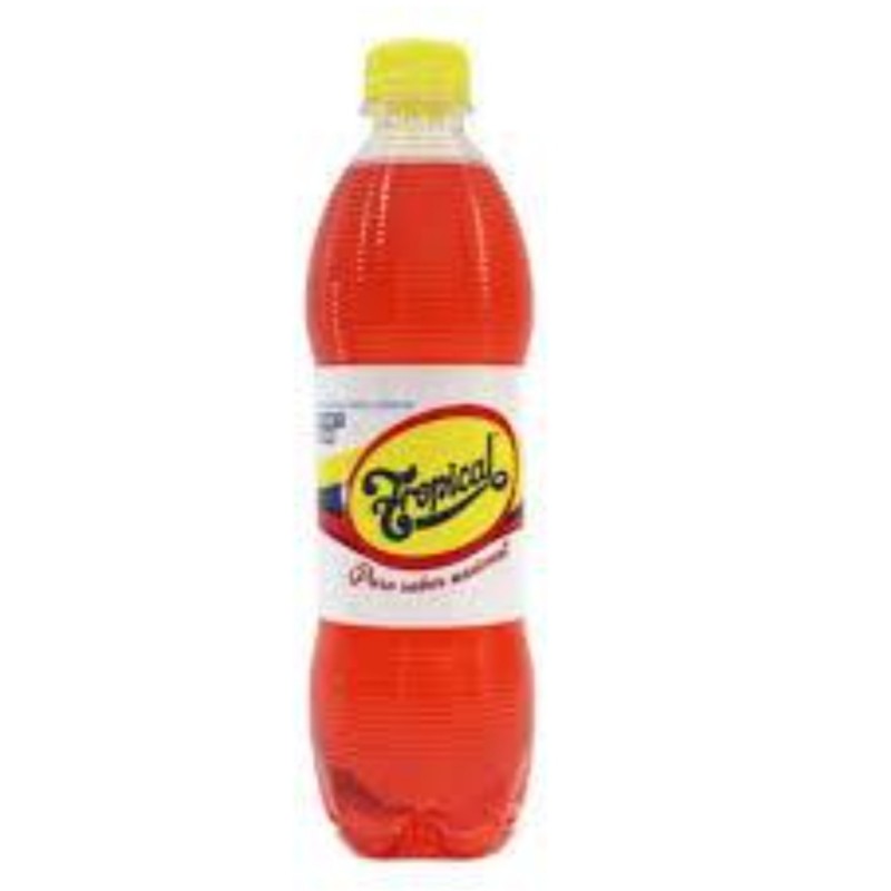 Kola Tropical 500 ml: gaseosa color ámbar con burbuja fina y sabor cola suave endulzado con azúcar de caña. Notas cítricas tropicales que la hacen diferente a las colas tradicionales. Sin cafeína añadida, 0 % grasa.