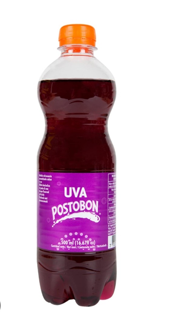 Postobón Uva 500 ml: gaseosa con sabor intenso a uva roja, burbuja fina y dulzor equilibrado. Sin grasa, sin proteínas, solo 39 kcal cada 200 ml. Ideal para acompañar comidas o refrescar tu día.